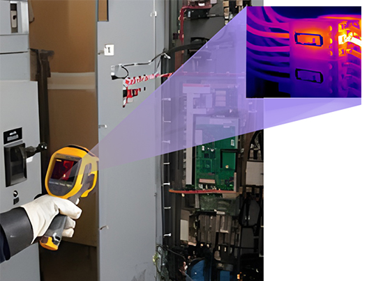 PTS Thermal imaging service involves electrical inspection in checking the components of UPS and battery using special infrared equipment.Infrared cameras are used to detect and photograph infrared radiations produced by warm objects, thus enabling an object's temperature to be analyzed in a non-invasive way and with a high level of precision. in this way it is possible to perform a preventive diagnosis of breakdown risks by analyzing the temperature of components including transformers, electrical switchboards, power factor correction systems, distribution cables, protection devices, isolators, UPS, converters, and batteries, etc.